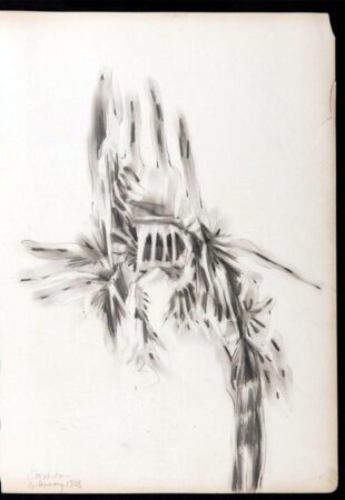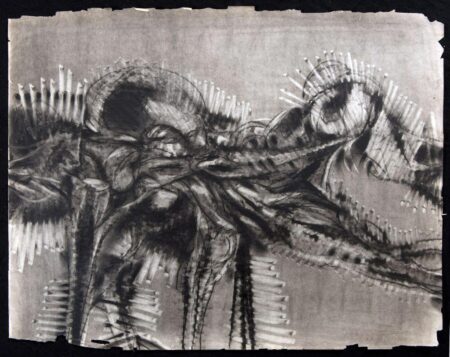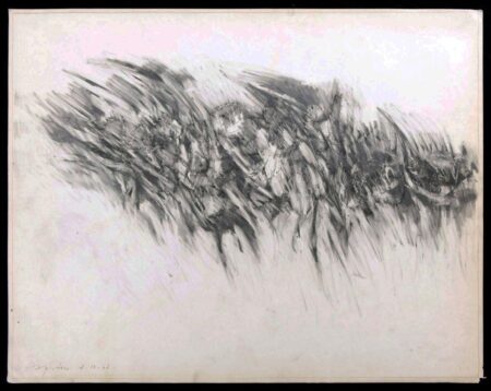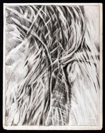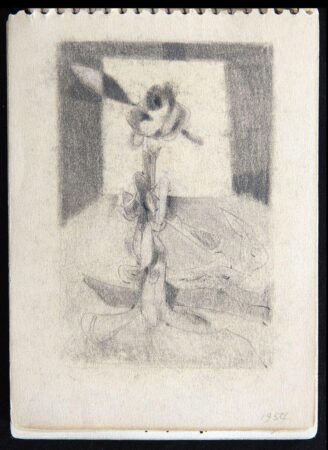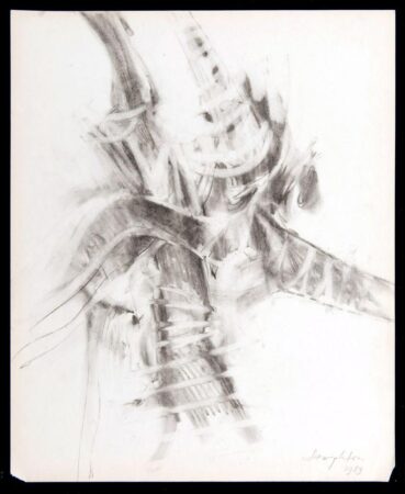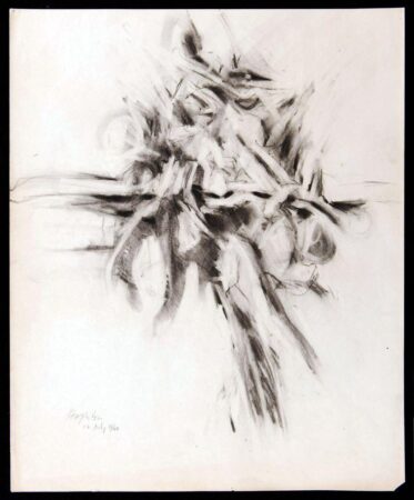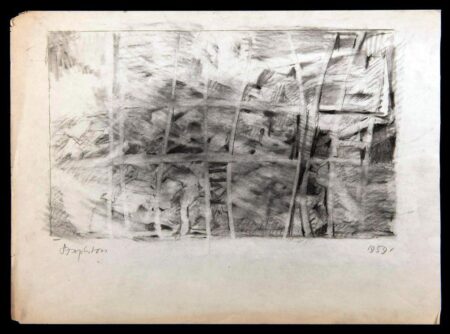 Figures 4 and 5 share a common presence: dreamlike abstracted shapes cohabitating, each with its own purpose reminding the viewer that theirs is a dynamic. Gorky’s shapes appear to move and communicate with one another as if on a softly lit stage. Stapleton’s, in contrast, are busy constructing their own vertical environ in darker, contrasting tones of gray. Stapleton’s growing spontaneity in his approach to drawing was mirrored in his passion for jazz, a self-reflection he described in his 1959 Fulbright scholarship application.¹