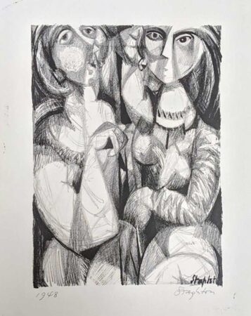 Already earning prizes and awards for his portraiture by the time he entered Tilden High School in Brooklyn, even as a teenager Joseph Stapleton was continuously looking to improve the quality of his line. An autodidact, despite taking nearly twice the number of credits required, including three languages, Stapleton spent his afternoons at the Fifth Avenue branch of the New York Public Library immersing himself in the work of Hiroshige, Hokusai, Utamaru, Sesshū and early Chinese Sung artists, an interest that would become a lifelong passion. He would also become intensely consumed with learning character formation and line flow in Kaisho, Gyosho and Sosho calligraphy styles. Every weekday evening he attended a WPA anatomy drawing class with his friend Abram Lerner, who would later become the founding director of the Hirshhorn Museum. It was through the WPA that Joseph Stapleton met Mark Rothko, Adolph Gottlieb, and others of the first generation; but most importantly, he met Arshile Gorky. Gorky would become Stapleton’s most critical influencer going forward.