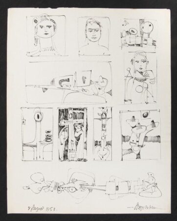 - Figure 6 Joseph Stapleton, Untitled, 1952, India ink on newsprint, 22.5×16 inches (57×40.6 cm). ©Robert Solomon. All rights reserved.